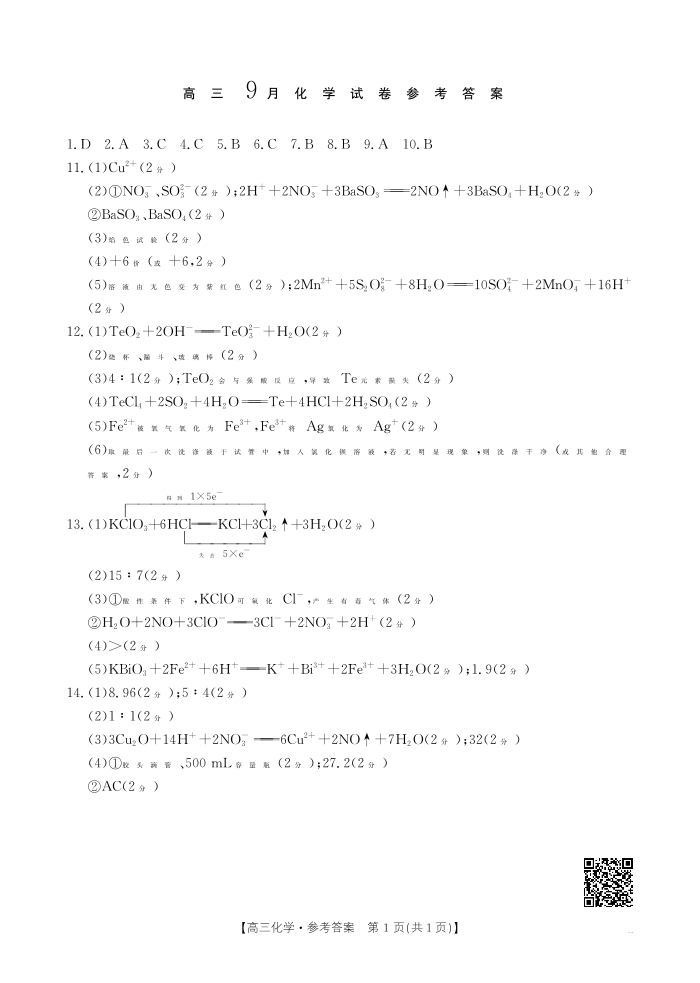 福建省部分学校2026届高三9月开学联考 化学答案.pdf