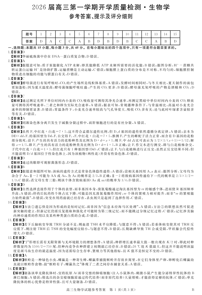 安徽省华师联盟2026届高三9月开学联考 生物详解版答案.pdf