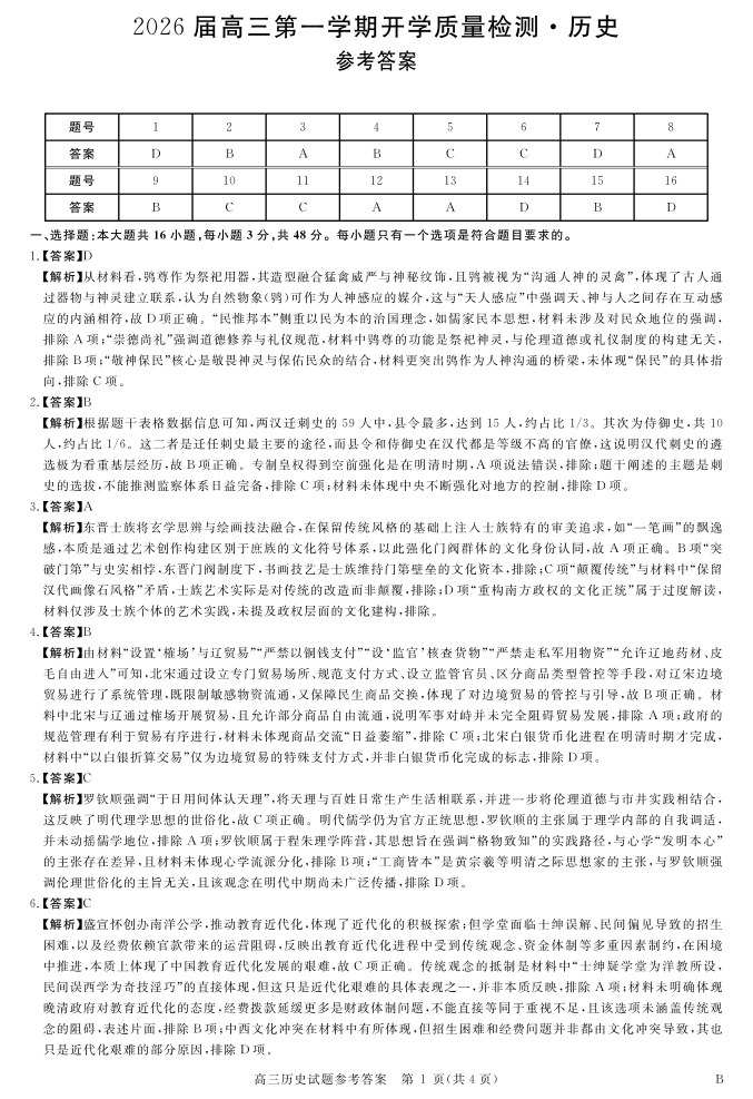 安徽省华师联盟2026届高三9月开学联考 历史详解版答案.pdf