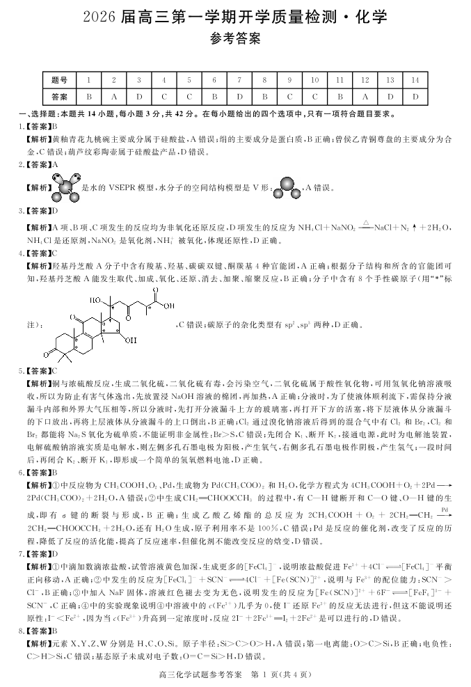 安徽省华师联盟2026届高三9月开学联考 化学详解版答案.pdf