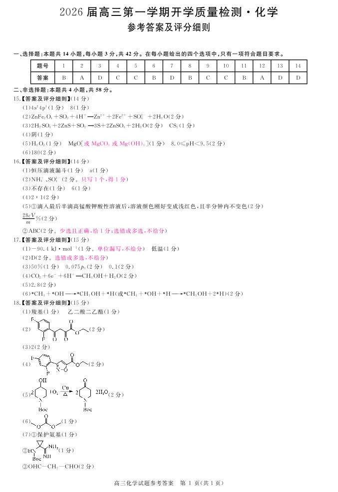 安徽省华师联盟2026届高三9月开学联考 化学评分细则.pdf