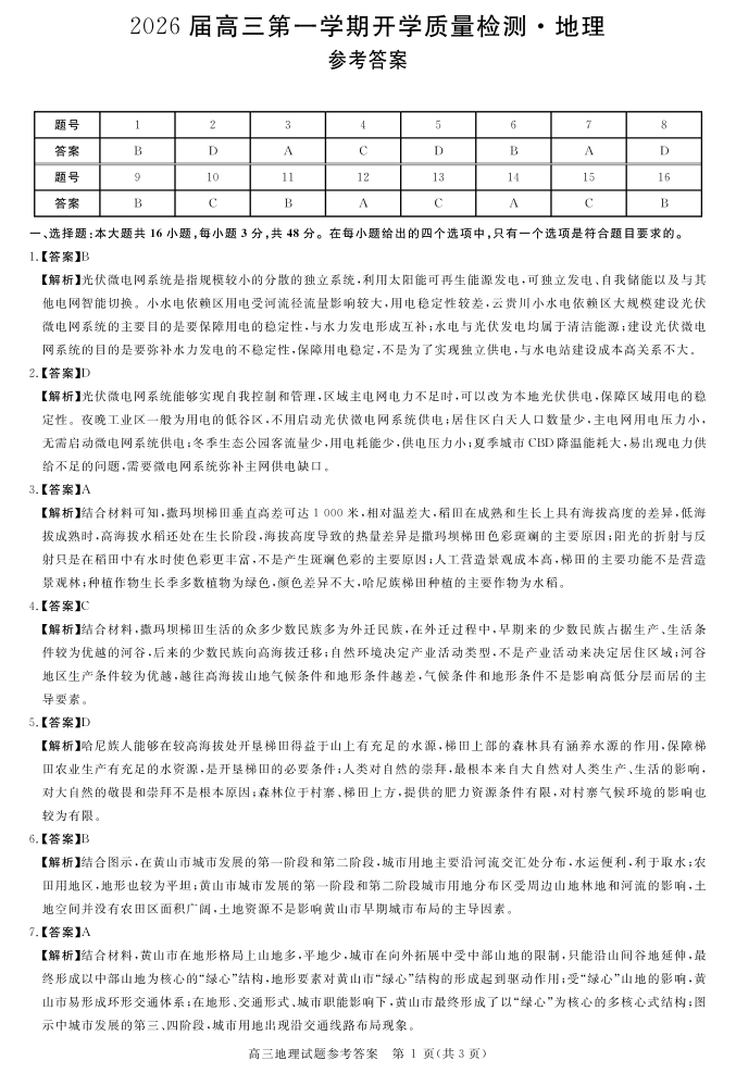 安徽省华师联盟2026届高三9月开学联考 地理详解版答案.pdf
