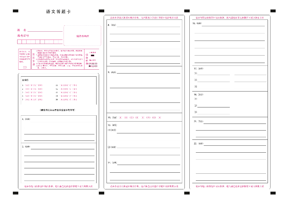 新时代高中教育联合体2025年秋季高三开学摸底考-附加测试卷语文答题卡.pdf