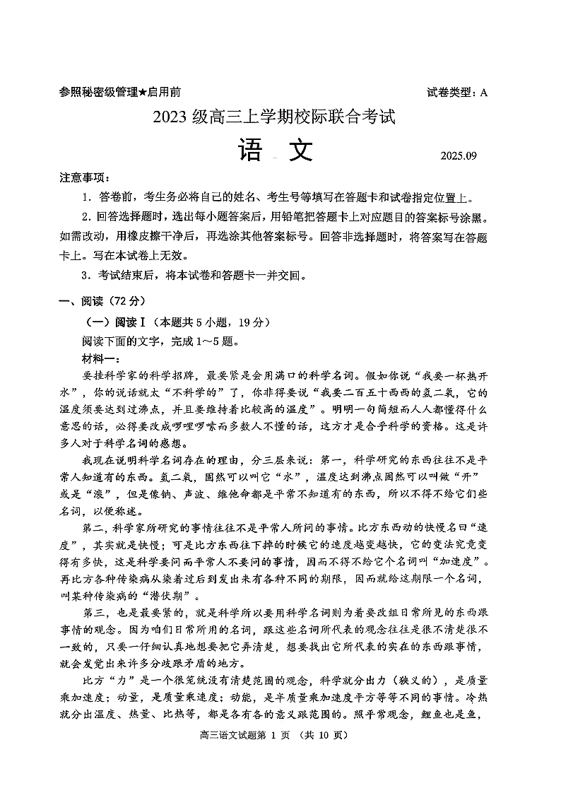 山东省日照市2026届高三年级上学期校际联合考试 语文.pdf