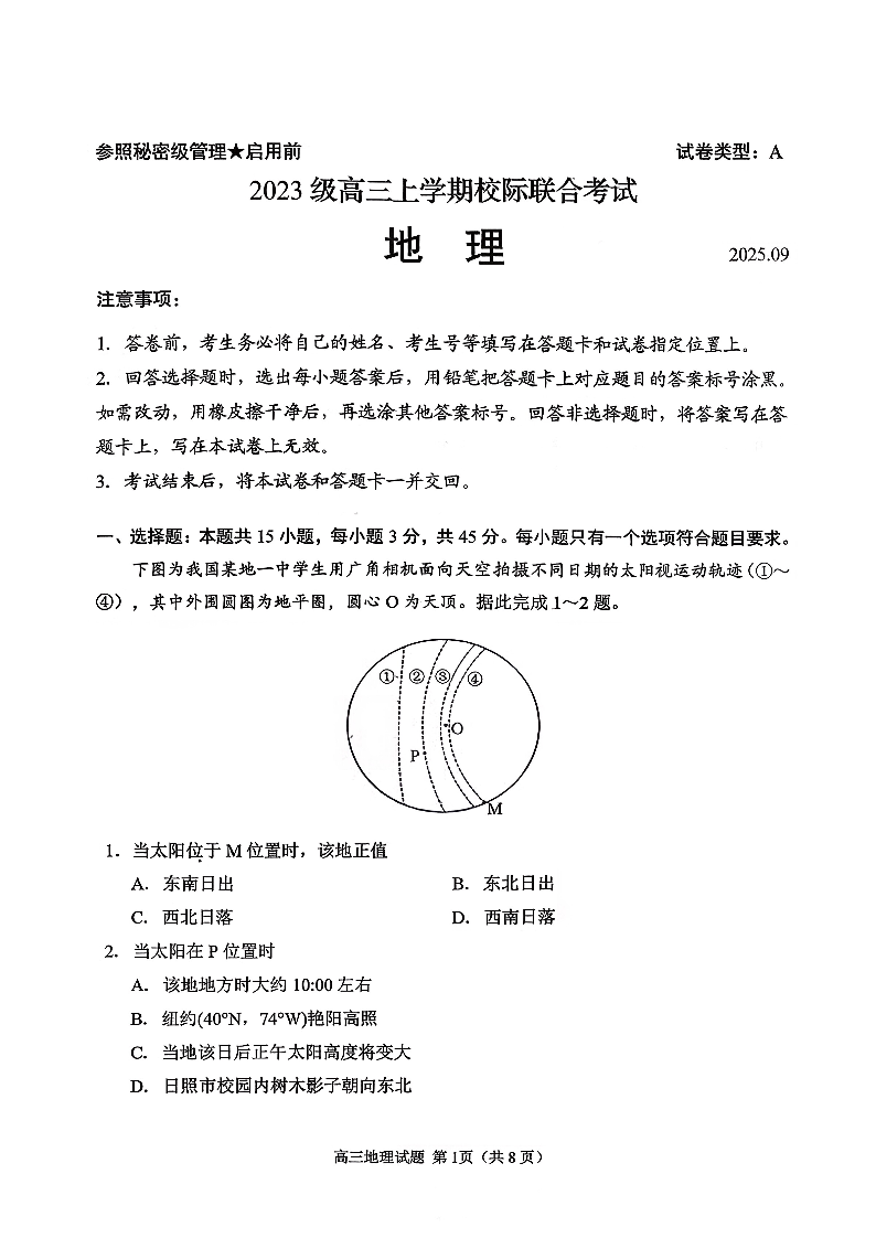 山东省日照市2026届高三年级上学期校际联合考试 地理.pdf