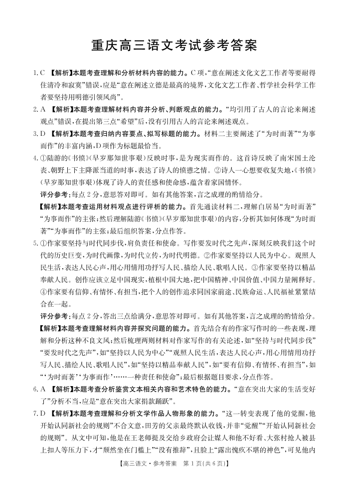 重庆市金太阳好教育联盟2026届高三9月开学联考 语文答案.pdf