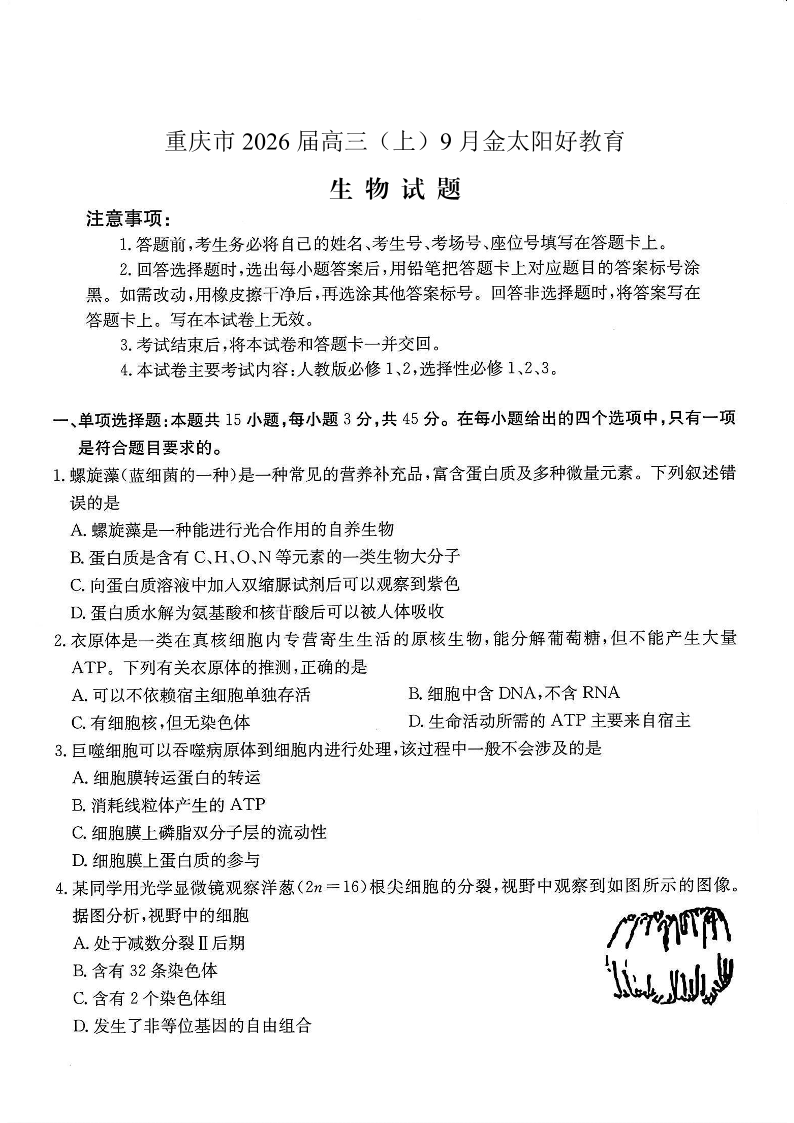 重庆市金太阳好教育联盟2026届高三9月开学联考 生物.pdf