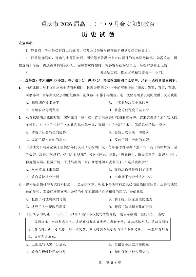 重庆市金太阳好教育联盟2026届高三9月开学联考 历史.pdf