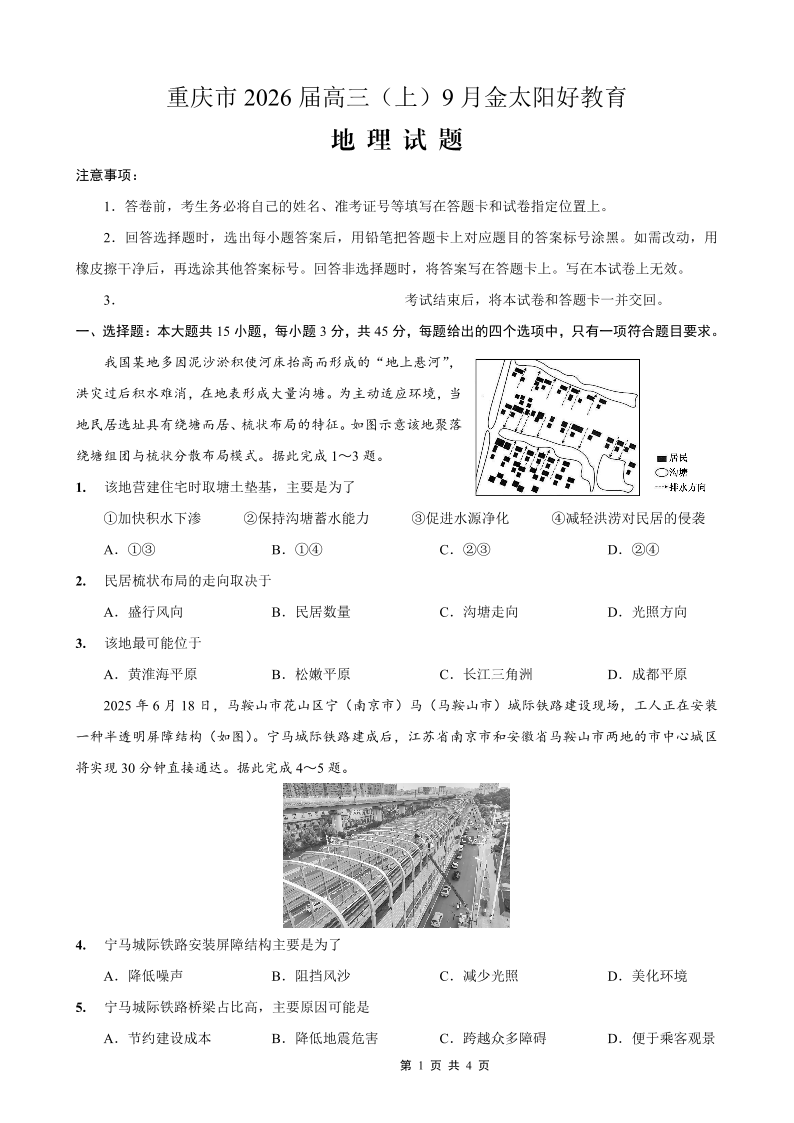重庆市金太阳好教育联盟2026届高三9月开学联考 地理.pdf