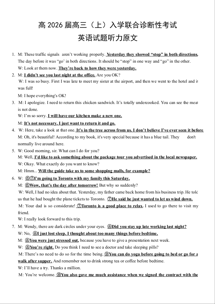 2025-2026西附、育才高三上开学考 英语听力原文.docx