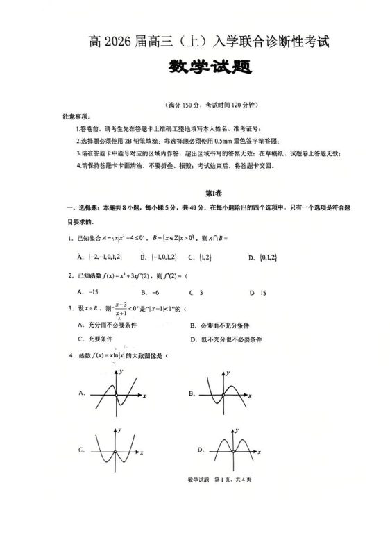 2025-2026西附、育才高三上开学考 数学试卷(含答案).pdf