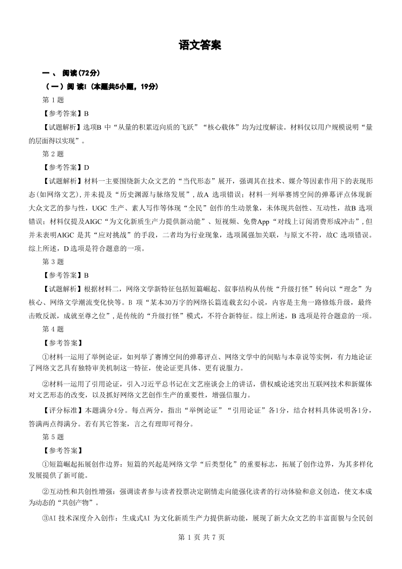 大庆市2026届高三年级第一次教学质量检测 语文答案.pdf