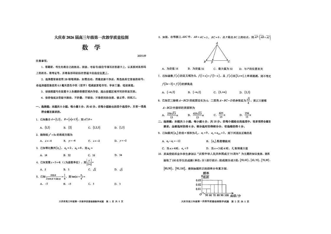 大庆市2026届高三年级第一次教学质量检测 数学.pdf