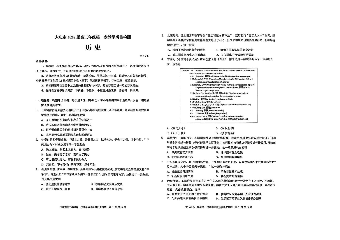 大庆市2026届高三年级第一次教学质量检测 历史.pdf