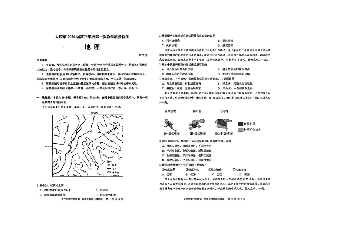 大庆市2026届高三年级第一次教学质量检测 地理.pdf