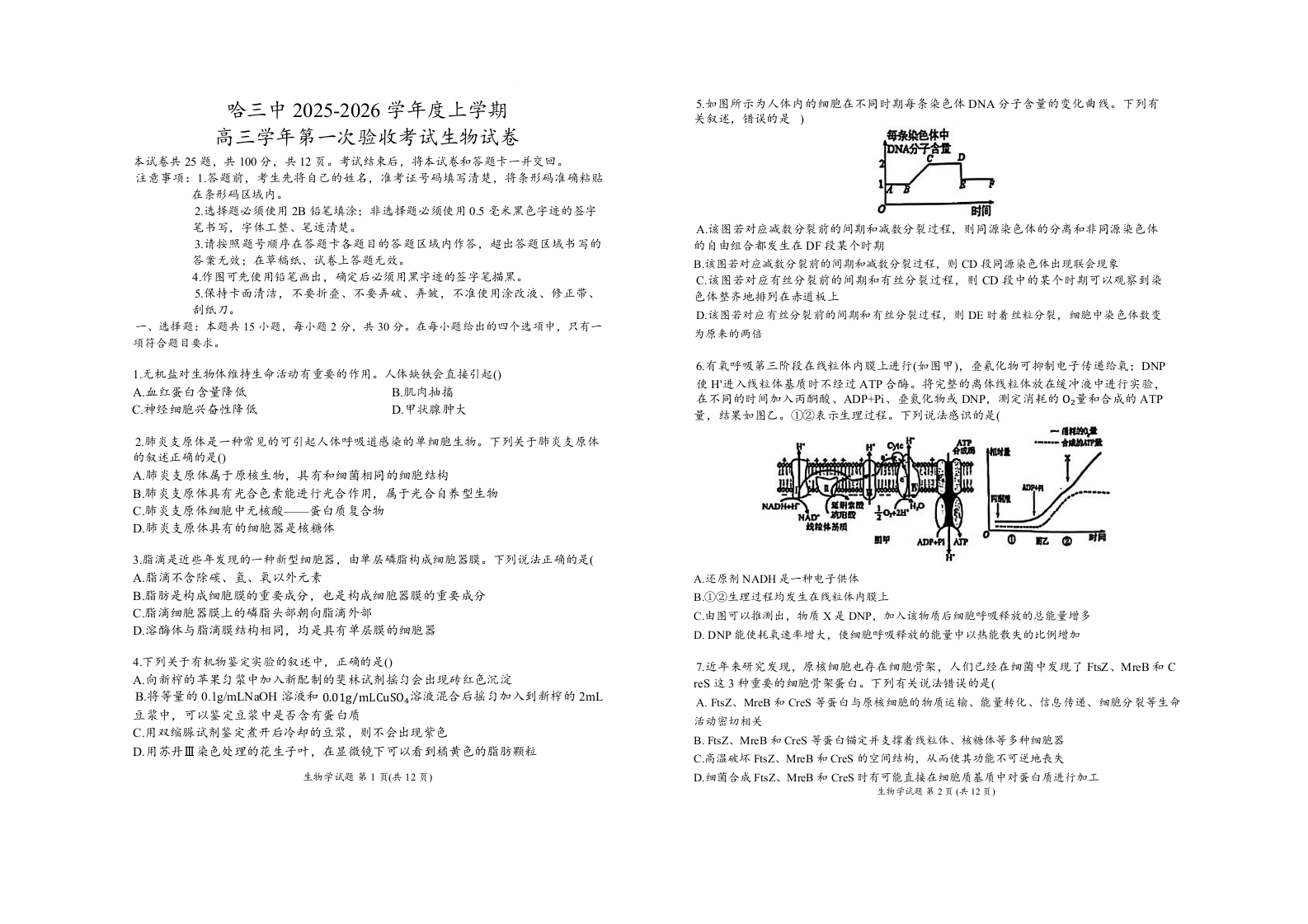 哈三中2025-2026学年度上学期高三学年第一次验收考试 生物答案.docx