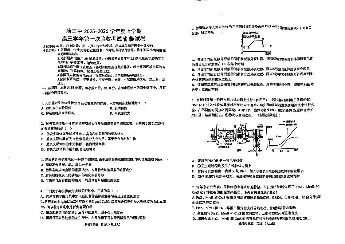 哈三中2025-2026学年度上学期高三学年第一次验收考试 生物.pdf
