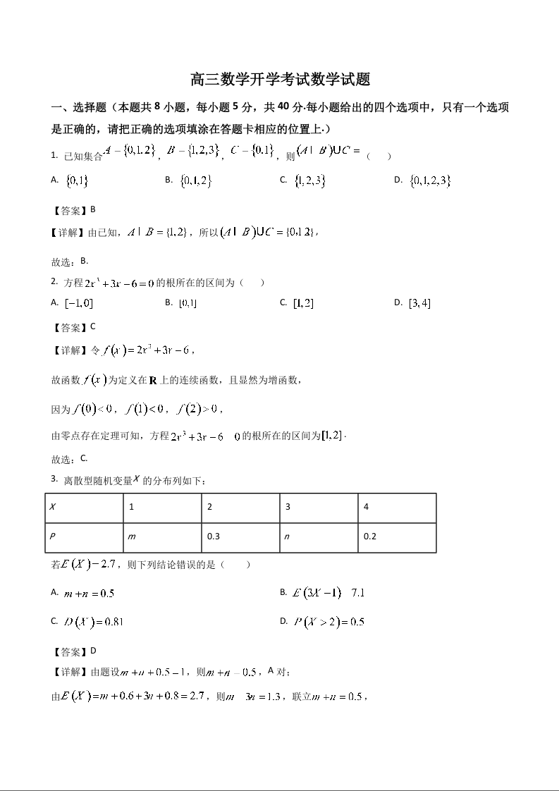 吉林省梅河口市第五中学2026届高三上学期开学考试 数学试卷(含答案).docx