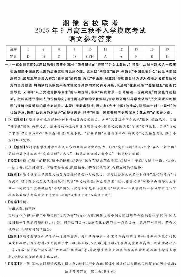 湘豫名校联考2025年9月高三秋季入学摸底考试 语文答案.pdf