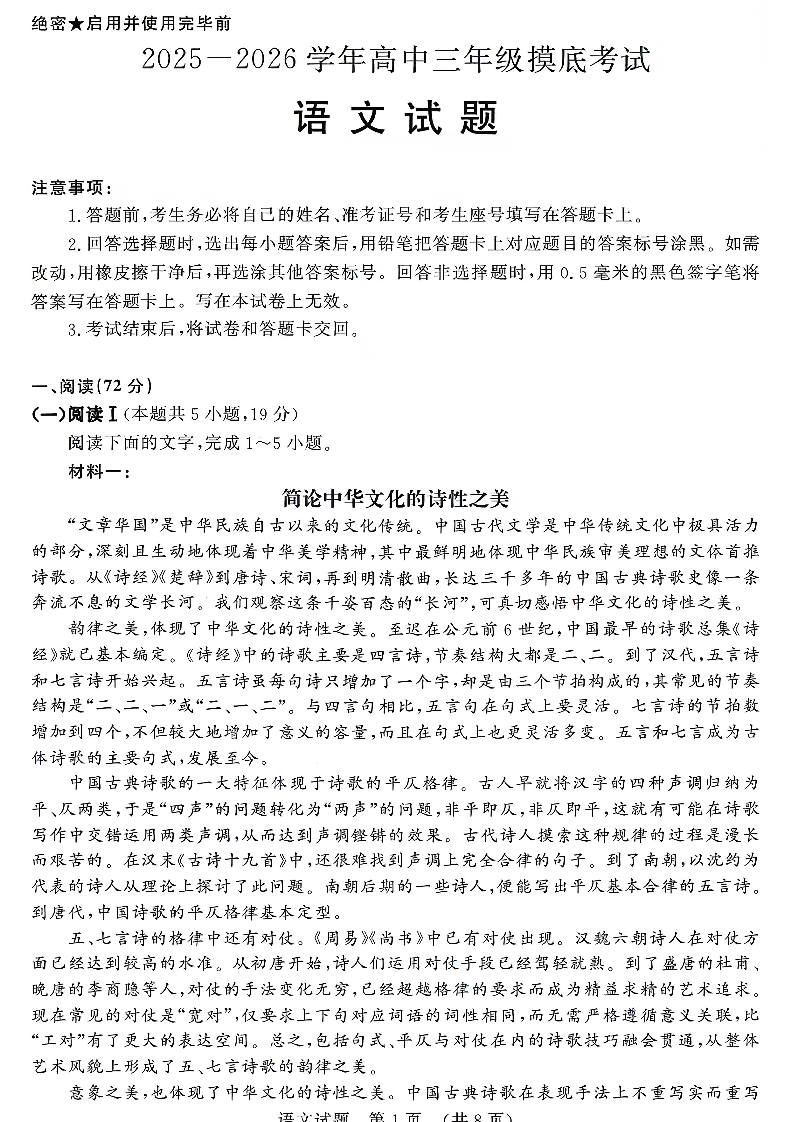 济南市2025-2026学年高三开学摸底考试 语文.pdf
