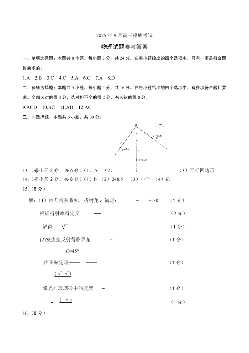 济南市2025-2026学年高三开学摸底考试 物理答案.pdf