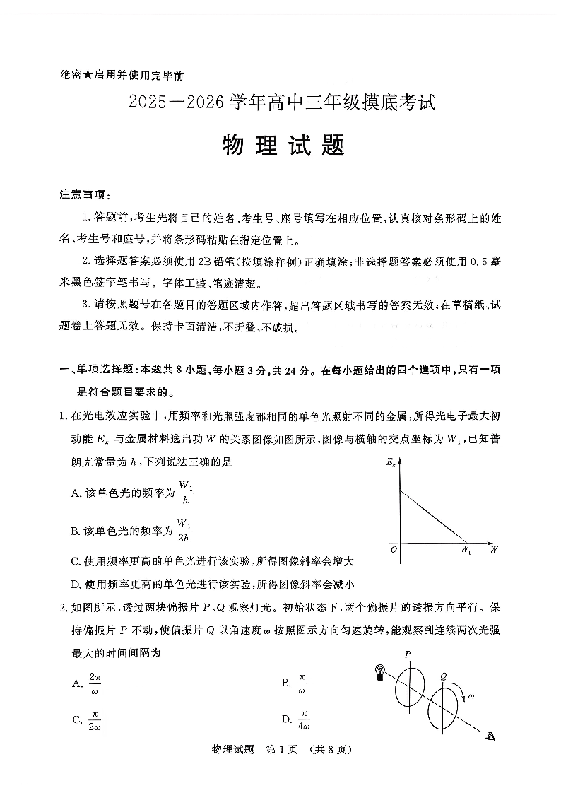 济南市2025-2026学年高三开学摸底考试 物理.pdf