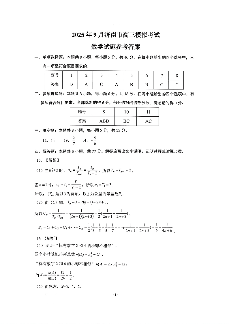 济南市2025-2026学年高三开学摸底考试 数学答案.pdf