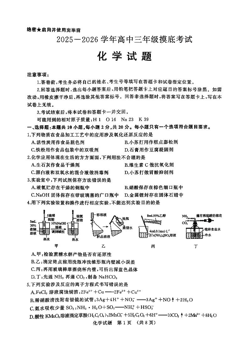 济南市2025-2026学年高三开学摸底考试 化学.pdf
