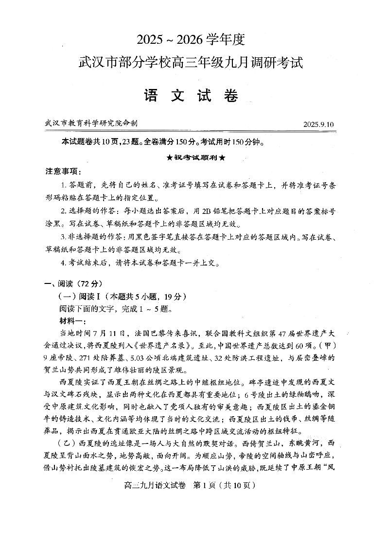 武汉市部分学校2025~2026学年度高三年级九月调研考试 语文.pdf