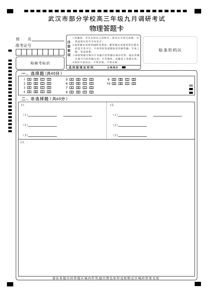 武汉市部分学校2025~2026学年度高三年级九月调研考试 物理答题卡.pdf