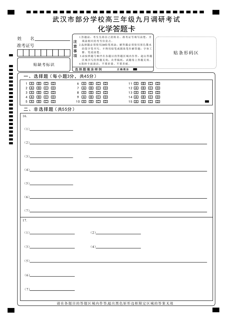 武汉市部分学校2025~2026学年度高三年级九月调研考试 化学答题卡.pdf
