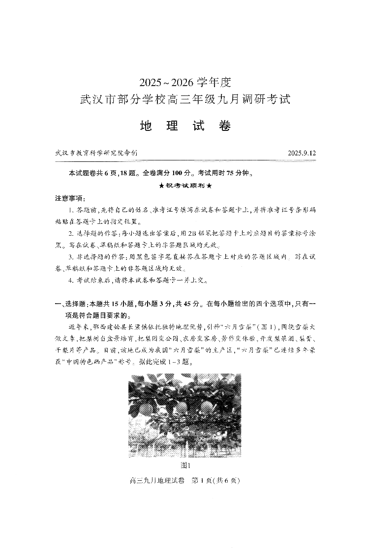 武汉市部分学校2025~2026学年度高三年级九月调研考试 地理.pdf