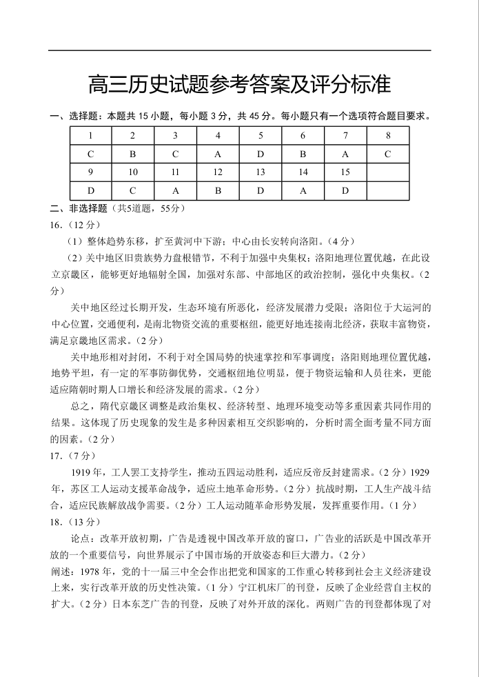 山东省泰安肥城市2025-2026学年高三上学期开学学情诊断 历史答案.docx