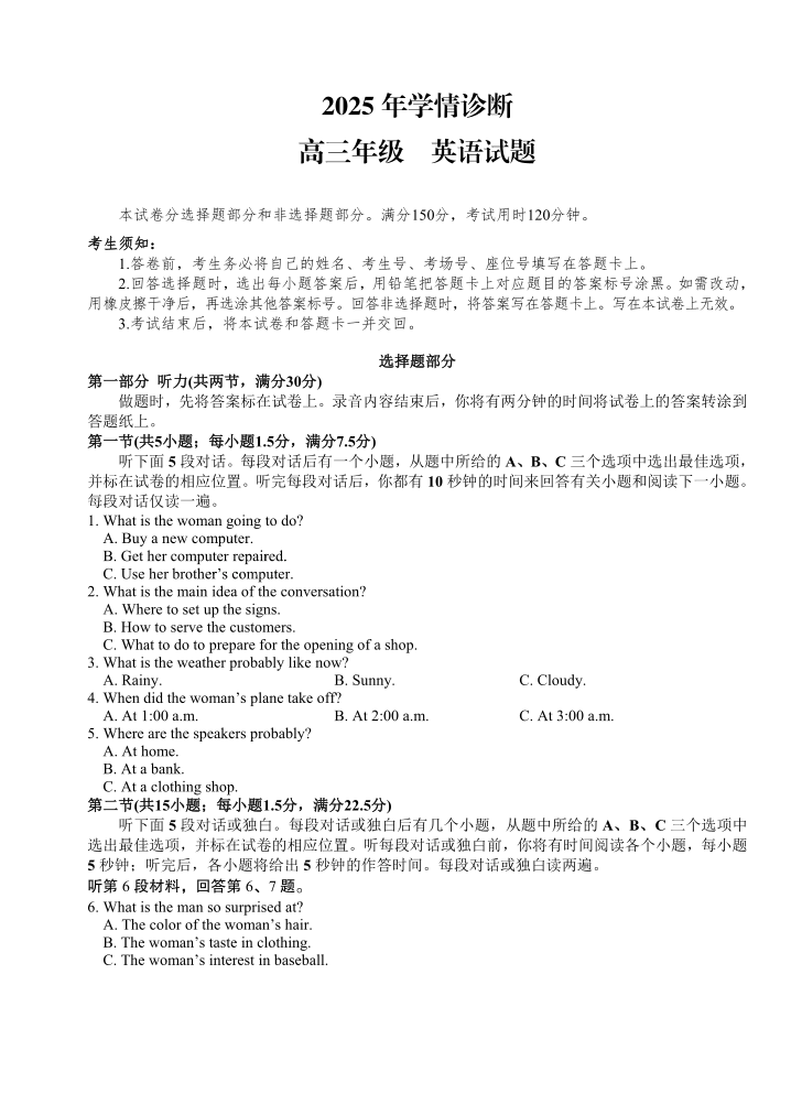 重庆市西北狼教育联盟2026届高三上学期开学学情诊断 英语试题(含答案).pdf