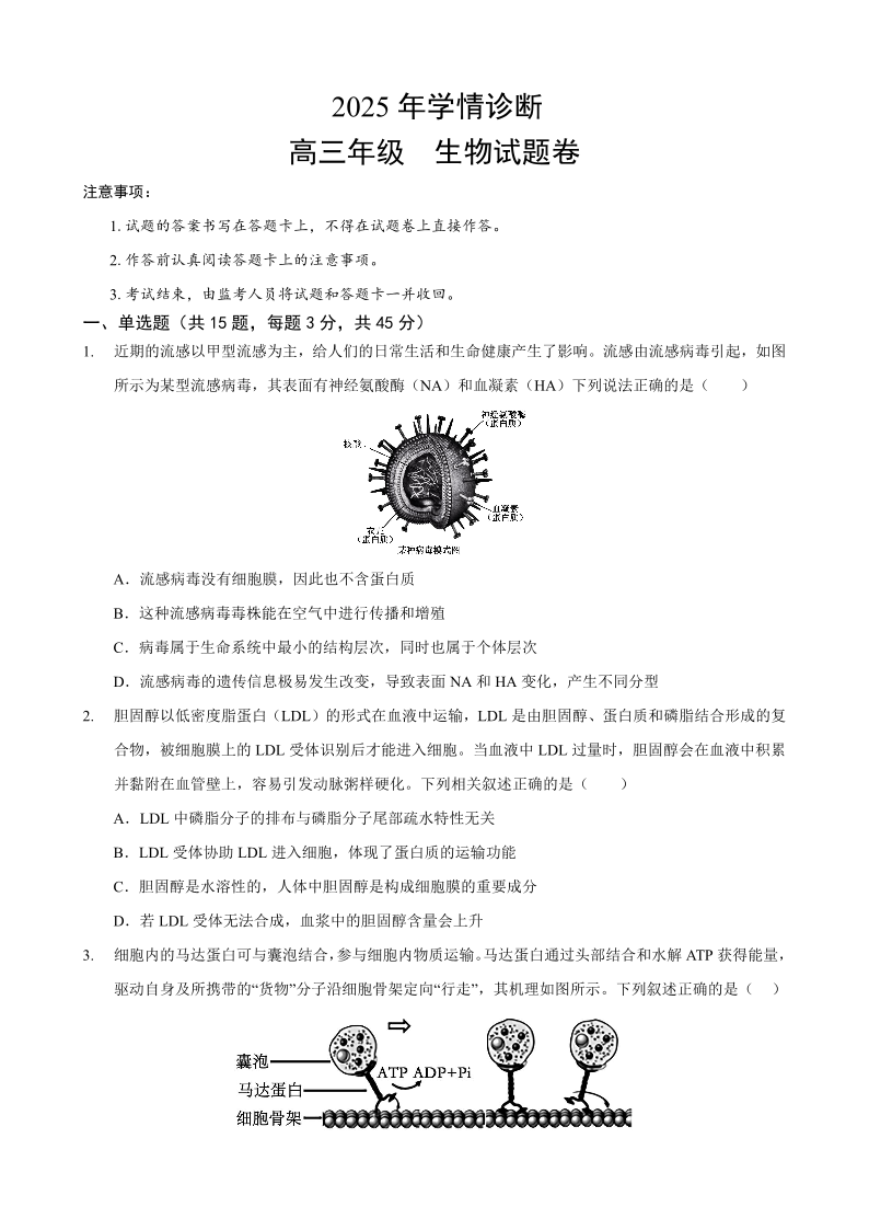 重庆市西北狼教育联盟2026届高三上学期开学学情诊断 生物试题(含答案).pdf