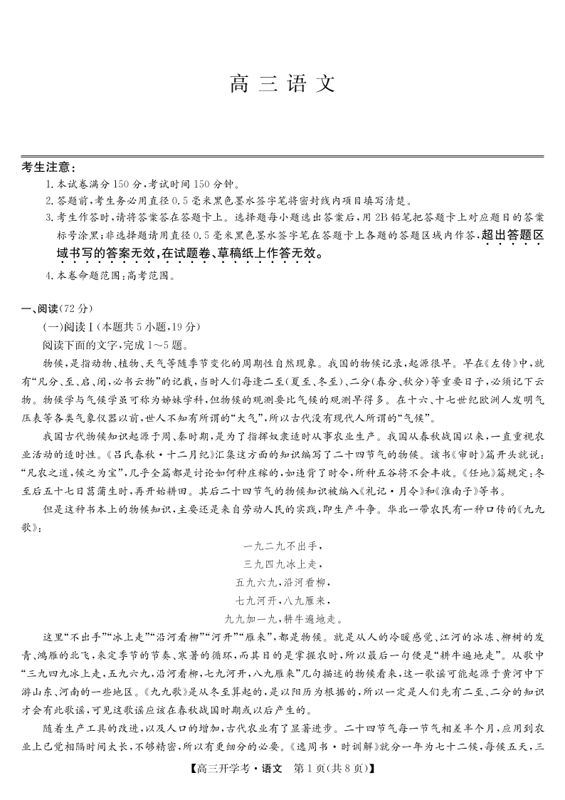安徽省九师联盟2026届高三9月开学联考 语文.pdf
