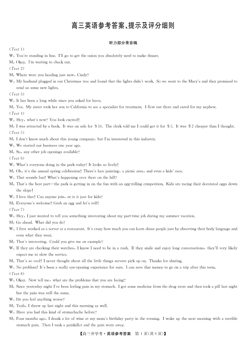 安徽省九师联盟2026届高三9月开学联考 英语答案.pdf