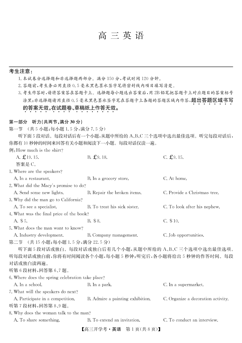 安徽省九师联盟2026届高三9月开学联考 英语.pdf