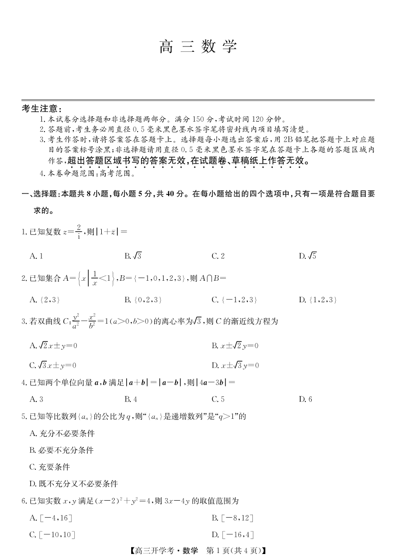安徽省九师联盟2026届高三9月开学联考 数学.pdf