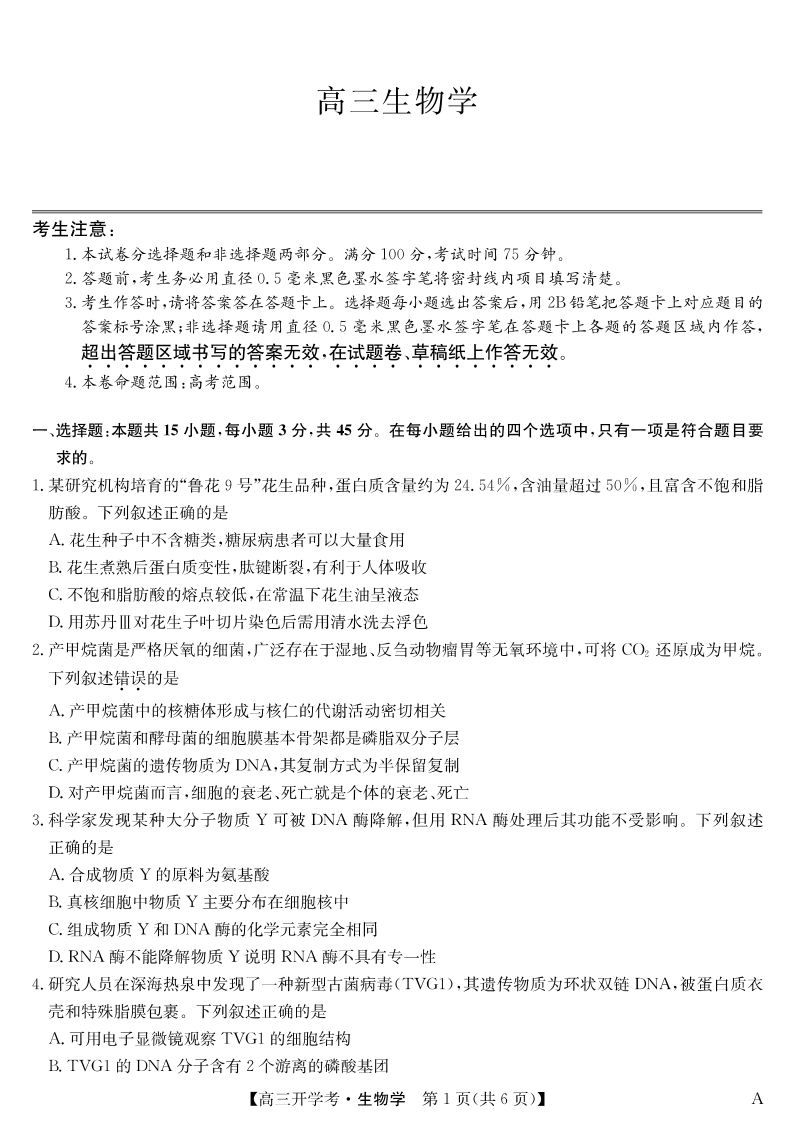 安徽省九师联盟2026届高三9月开学联考 生物.pdf