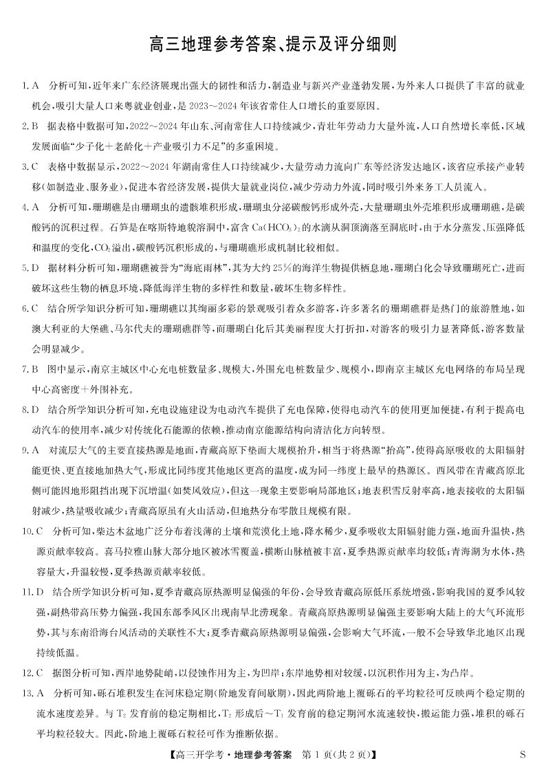 安徽省九师联盟2026届高三9月开学联考 地理答案.pdf