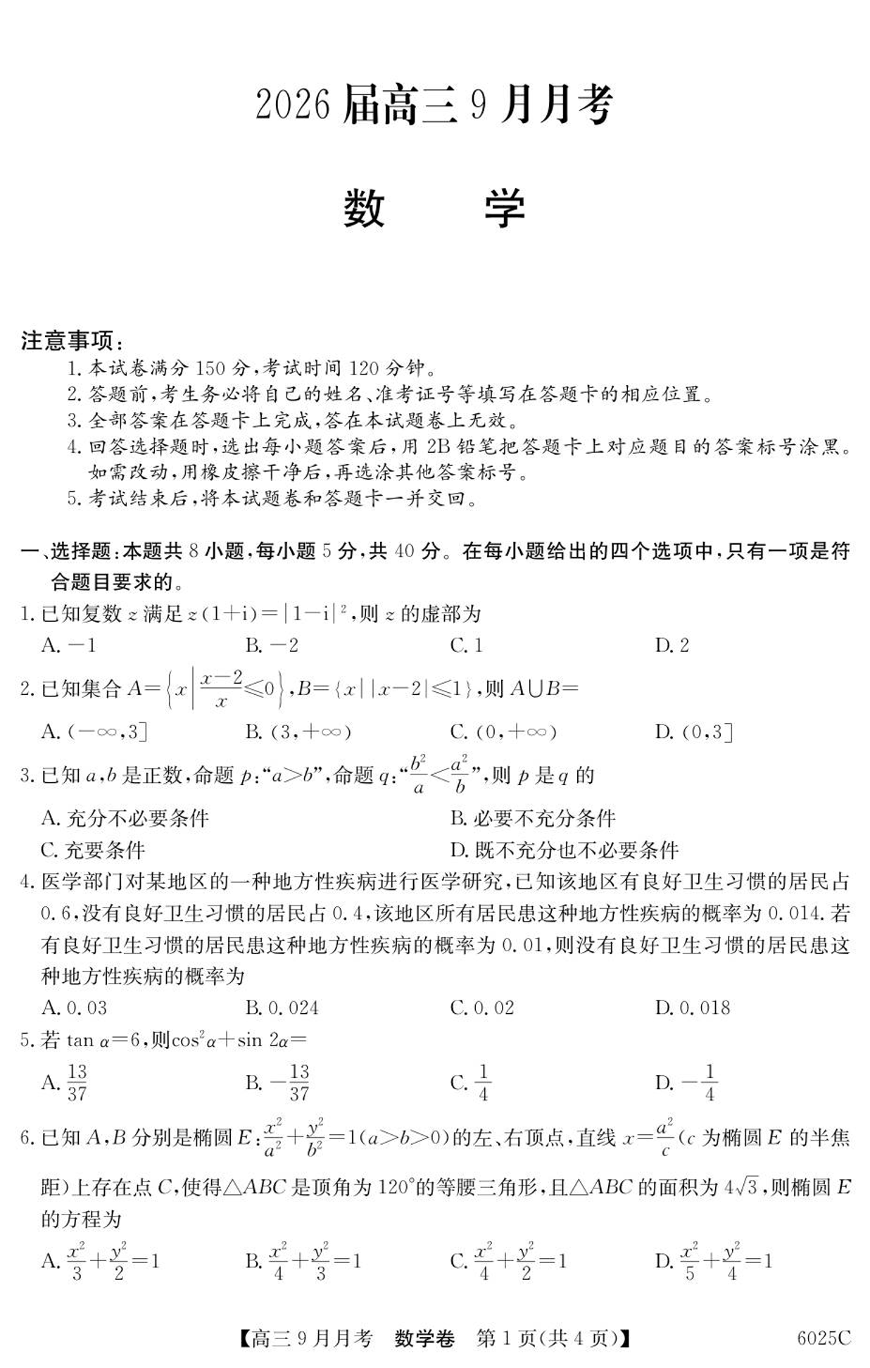 广东省2025-2026学年高三上学期9月月考 数学.pdf