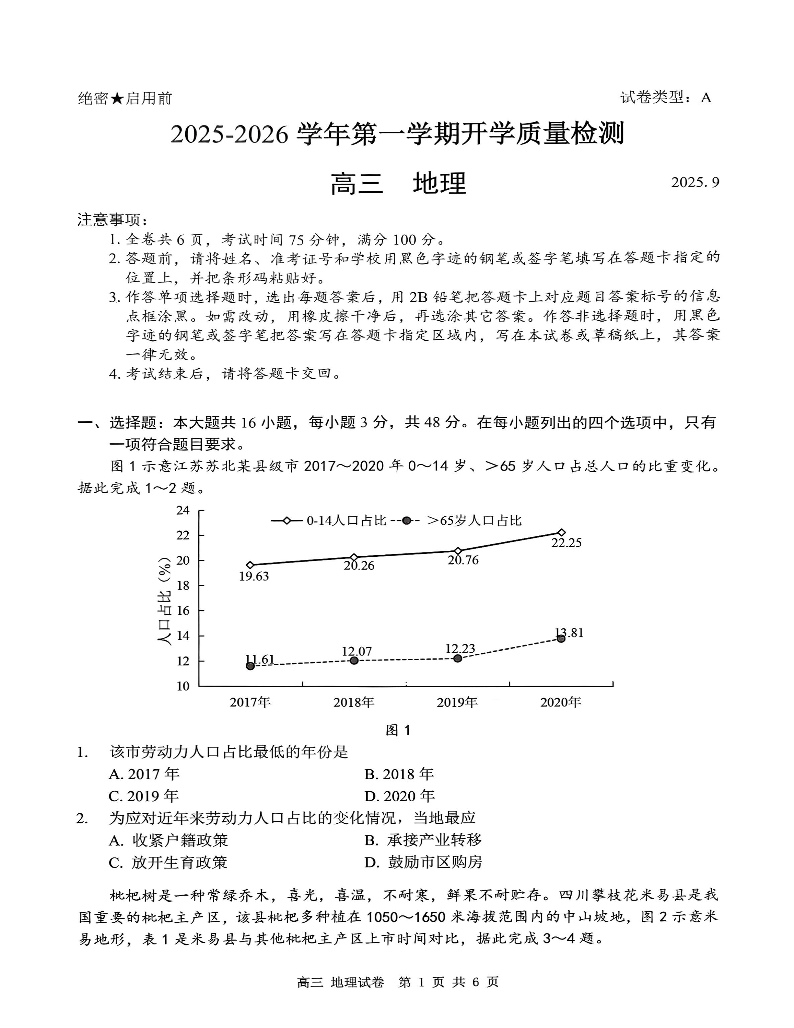 深圳市罗湖区2025-2026学年高三第一学期开学质量检测 地理.pdf