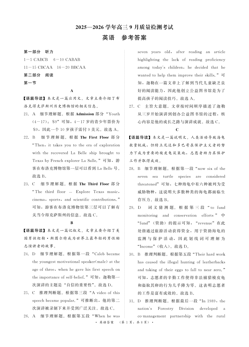 河南省青桐鸣2025-2026学年高三上学期9月质量检测考试 英语答案.pdf