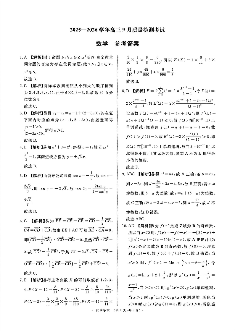 河南省青桐鸣2025-2026学年高三上学期9月质量检测考试 数学答案.pdf