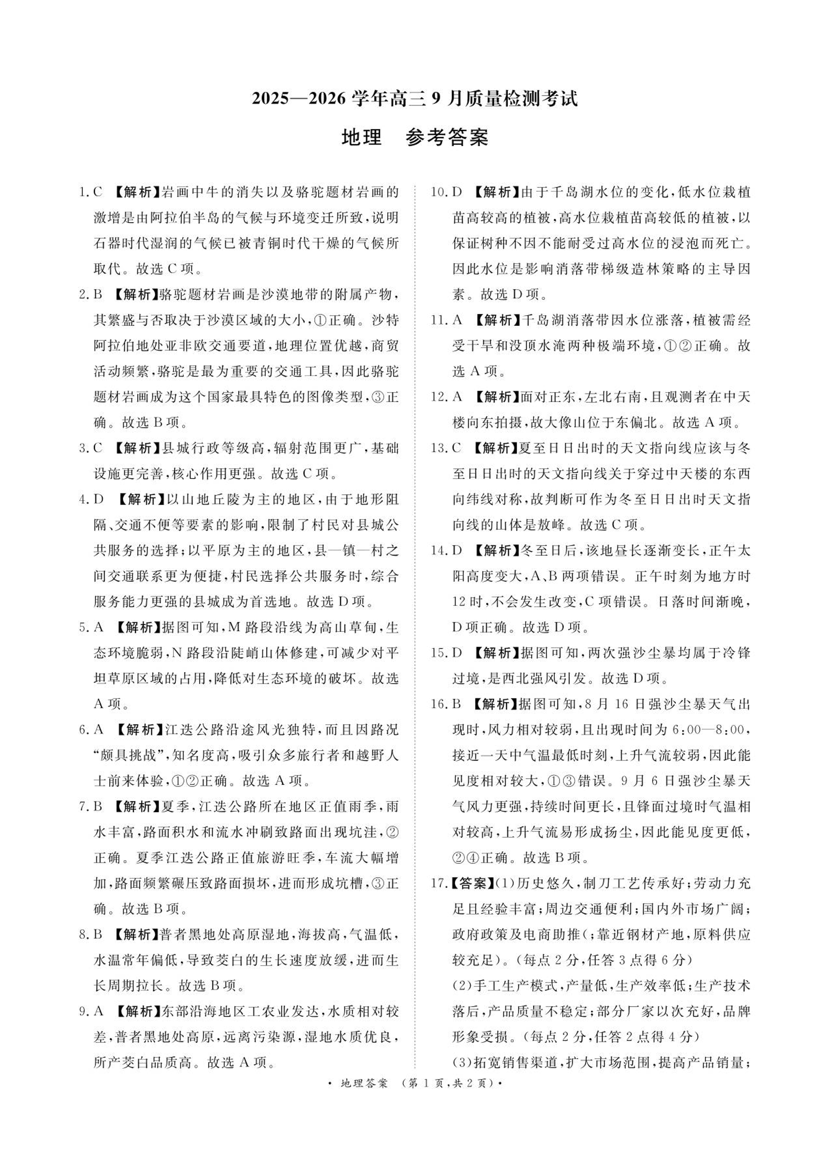河南省青桐鸣2025-2026学年高三上学期9月质量检测考试 地理答案.pdf