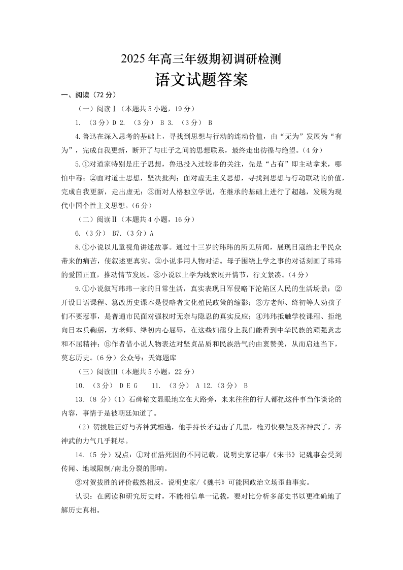 山东省青岛市2025年高三年级期初调研检测 语文答案.pdf