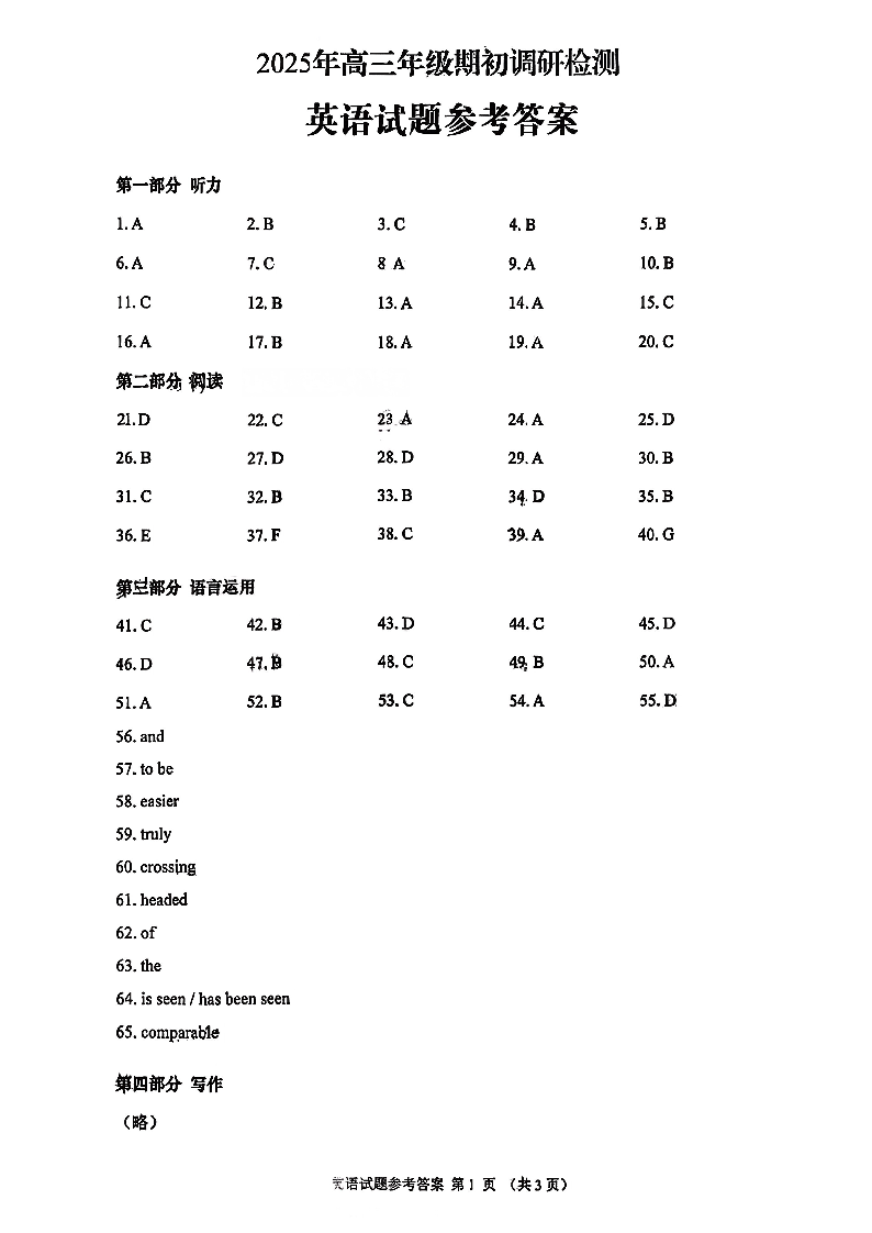 山东省青岛市2025年高三年级期初调研检测 英语答案.pdf