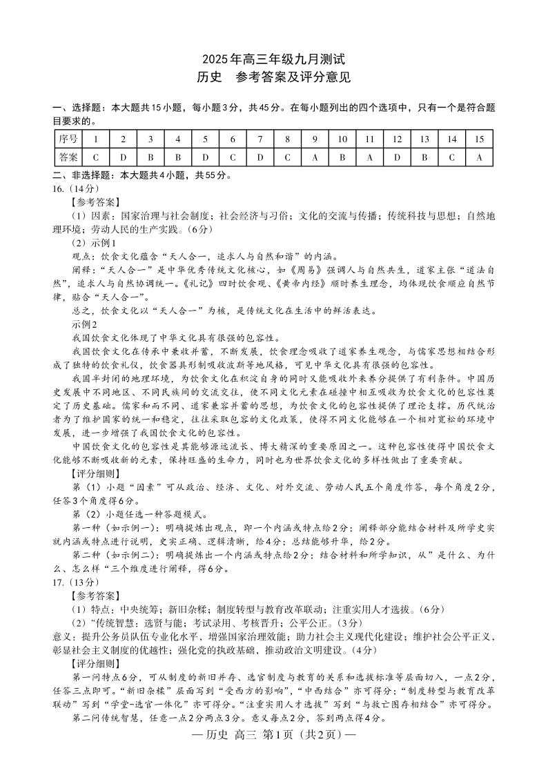 江西省南昌市2025年高三年级九月测试 历史答案.pdf