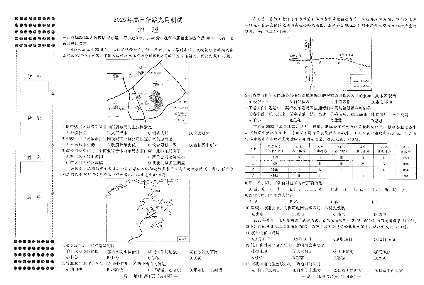江西省南昌市2025年高三年级九月测试 地理.pdf